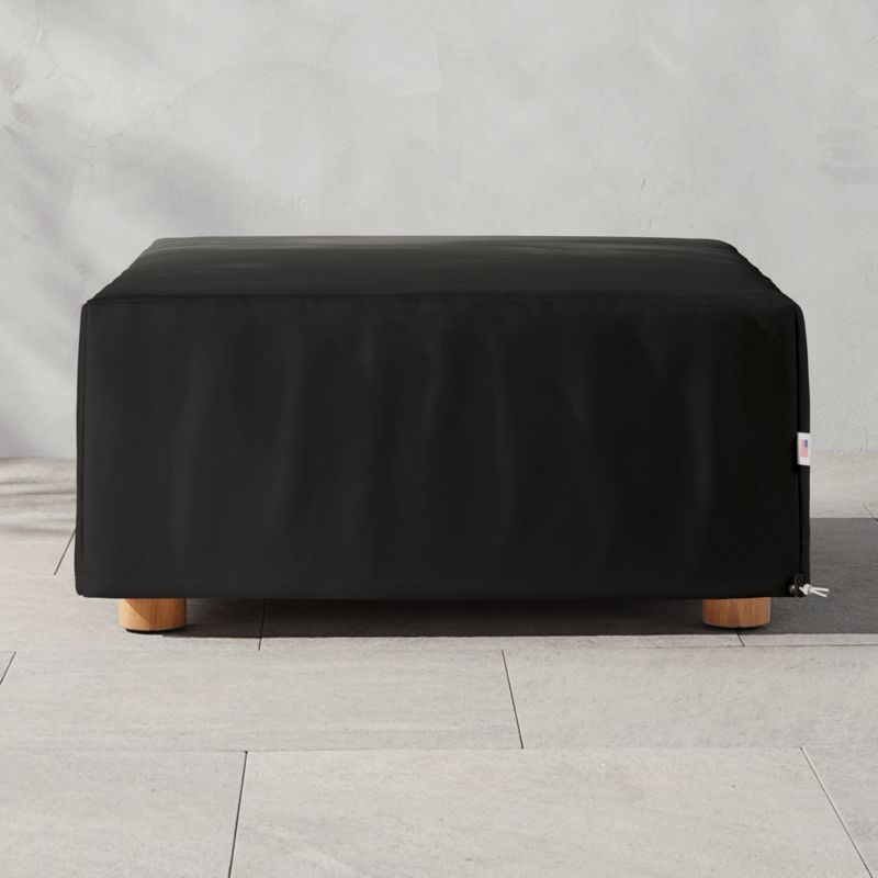Keep your Pinet outdoor ottoman looking great for seasons to come. Lightweight and durable cover is uniquely woven to resist wear and fading. One-way breathable fabric allows moisture to evaporate while water-resistant finish protects against rain, snow and sleet. Easy on and off with a simple drawstring closure system. Cover comes with a pouch for neat storage. CB2 exclusive.