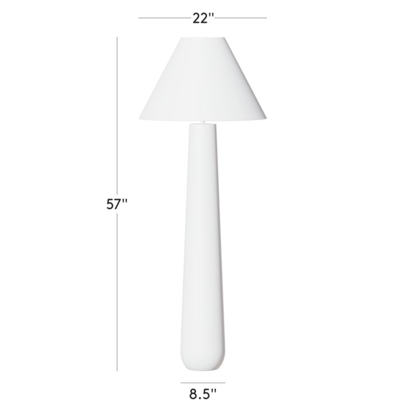 Monochromatic floor lamp stands on a solid ivory concrete base that tapers to an ivory linen shade. "We're really pushing the limits in terms of scale," explains designer Kara Mann. "We love the more substantial shades." Lamp gives off a soft light, perfect for warming up any space. CB2 exclusive.