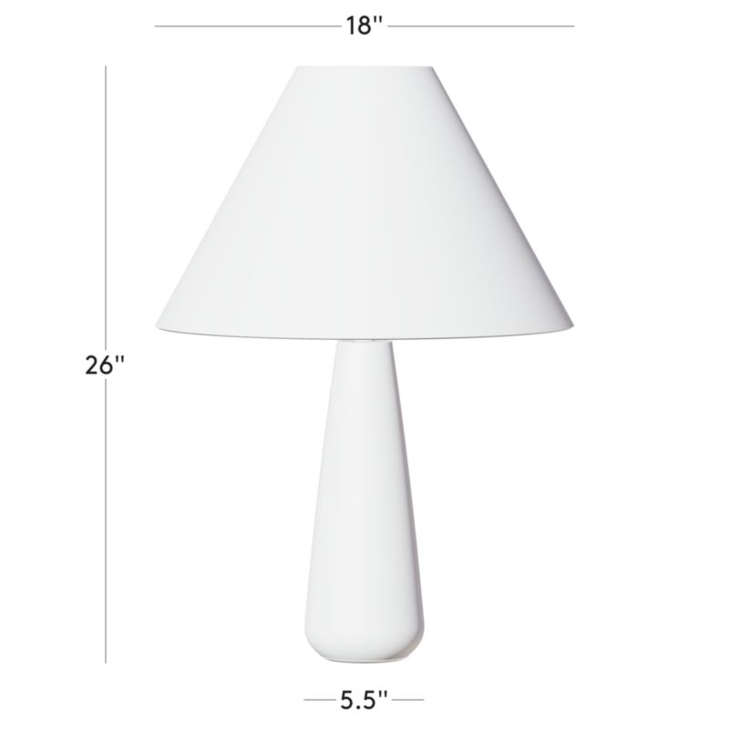Monochromatic table lamp stands on a solid ivory concrete base that tapers to an ivory linen shade. "We're really pushing the limits in terms of scale," explains designer Kara Mann. "We love the more substantial shades." Lamp gives off a soft light, perfect for warming up any space. CB2 exclusive.