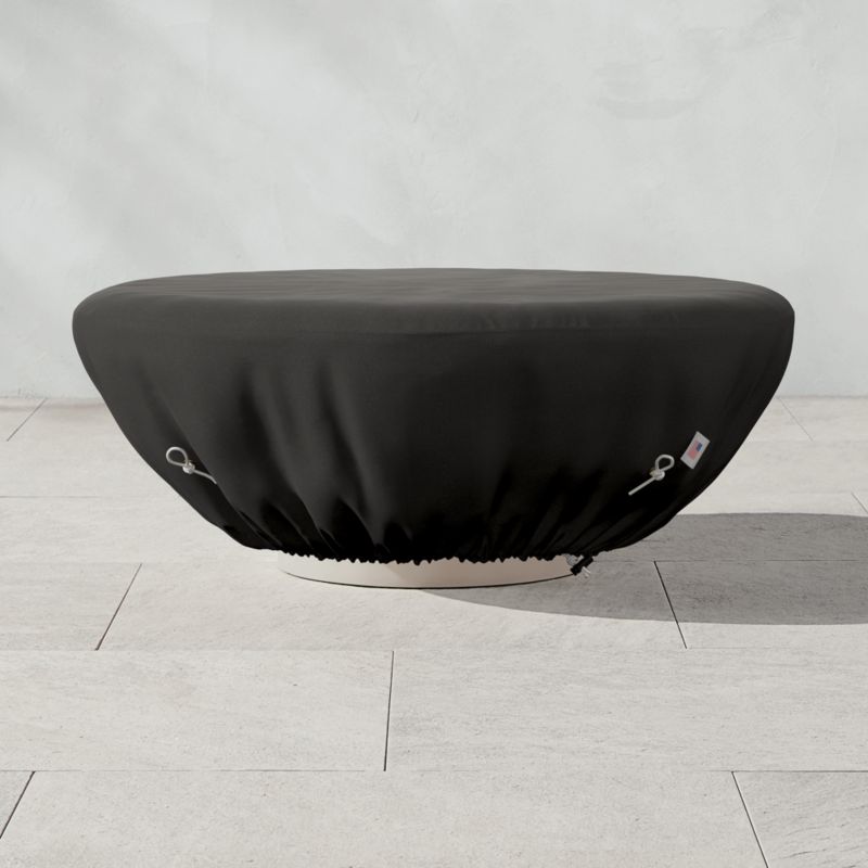 Keep your Pompeo outdoor small table looking great for seasons to come. Lightweight and durable cover is uniquely woven to resist wear and fading. One-way breathable fabric allows moisture to evaporate while water-resistant finish protects against rain, snow and sleet. Cover stays put with a drawstring closure system. Cover comes with a pouch for neat storage. CB2 exclusive.