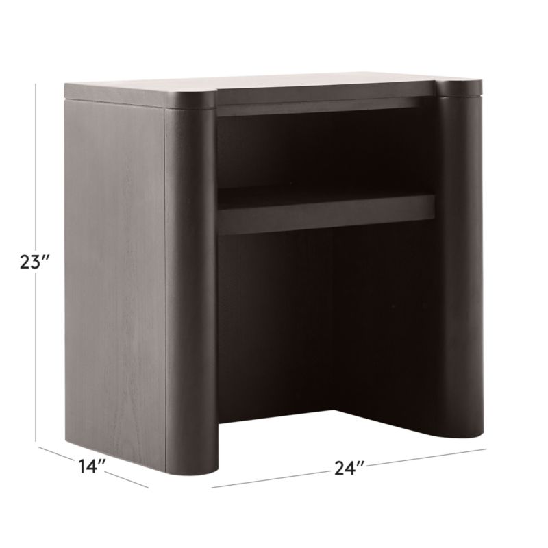 Kara Mann, walnut nightstand adds a relaxed feeling to any bedside. Traditional in shape with a single shelf for open storage, nightstand is finished in a modern blackened tone and topped with luxe Moore & Giles leather. "I think our dressers and side tables bridge the gap beautifully. They have personality but they don't take over a room," explains Kara. CB2 exclusive.