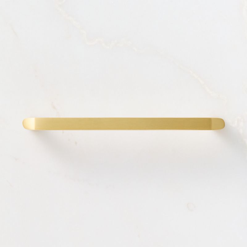 Featuring an ergonomic rounded front and angled edges, hand-finished cast brass handle by award-winning German designer Jannis Ellenberger is a sleek finishing touch. CB2 exclusive.