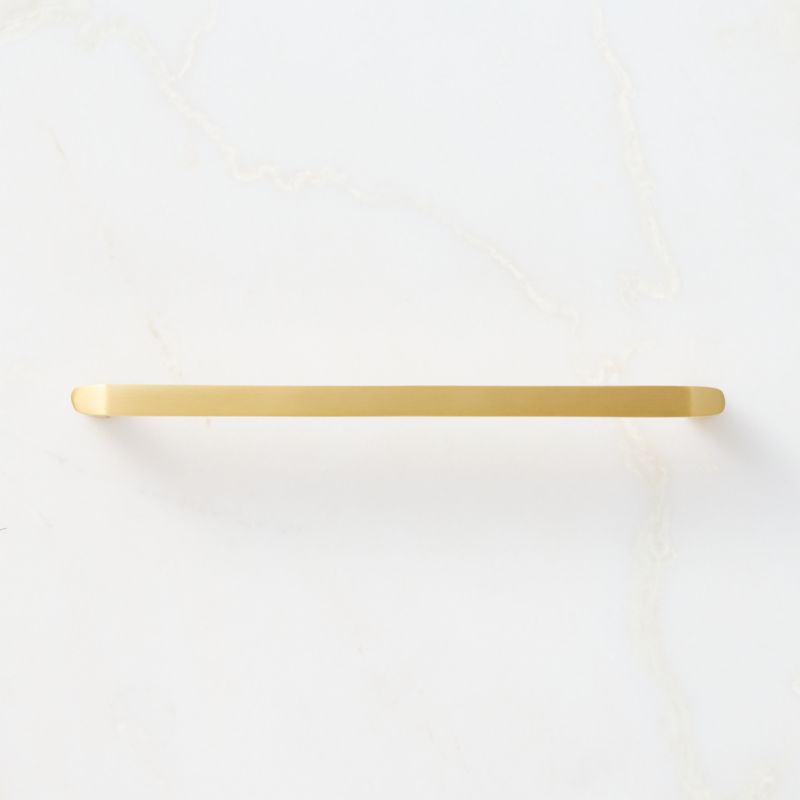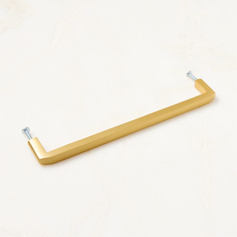 Featuring an ergonomic rounded front and angled edges, hand-finished cast brass handle by award-winning German designer Jannis Ellenberger is a sleek finishing touch. CB2 exclusive.