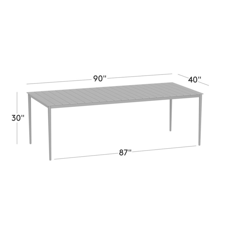 Outdoor table by Mermelada Estudio quietly draws attention to its refined silhouette. Powdercoated in a matte black finish, its steel planks and straight cylindrical legs come together to make room for eight. CB2 exclusive.