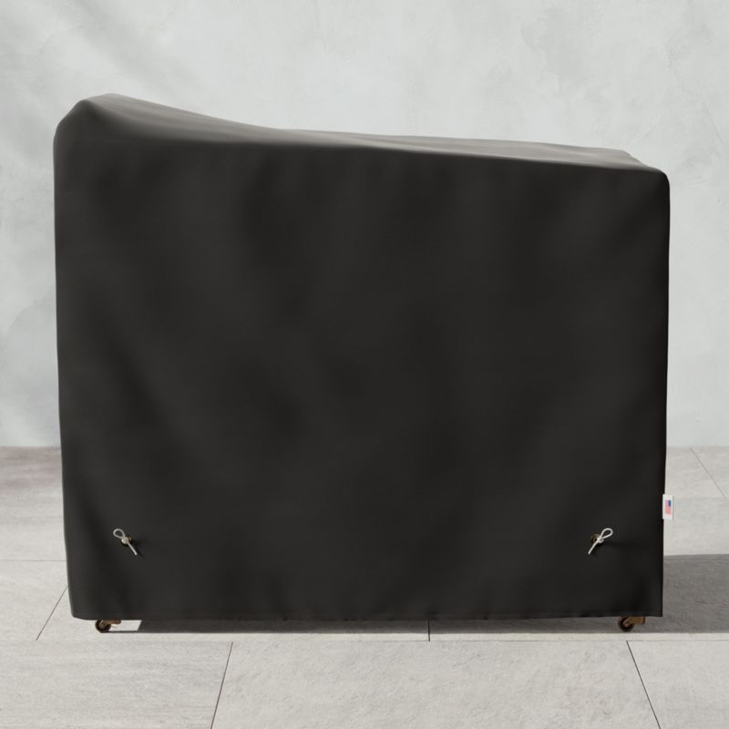 Keep your Remo outdoor bar cart looking great for seasons to come. Lightweight and durable cover is uniquely woven to resist wear and fading. One-way breathable fabric allows moisture to evaporate while water-resistant finish protects against rain, snow and sleet. Cover stays put with a clip-and-cord system. Cover comes with a pouch for neat storage. CB2 exclusive.