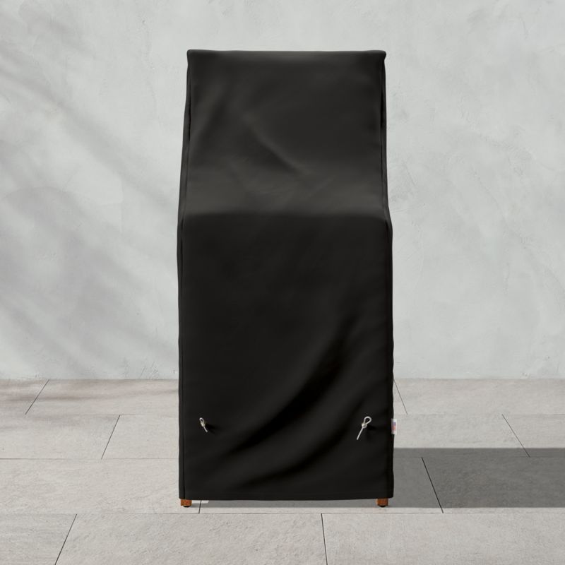 Keep your Roc outdoor bar stool looking great for seasons to come. Lightweight and durable cover is uniquely woven to resist wear and fading. One-way breathable fabric allows moisture to evaporate while water-resistant finish protects against rain, snow and sleet. Cover stays put with a clip-and-cord system. Cover comes with a pouch for neat storage. CB2 exclusive.