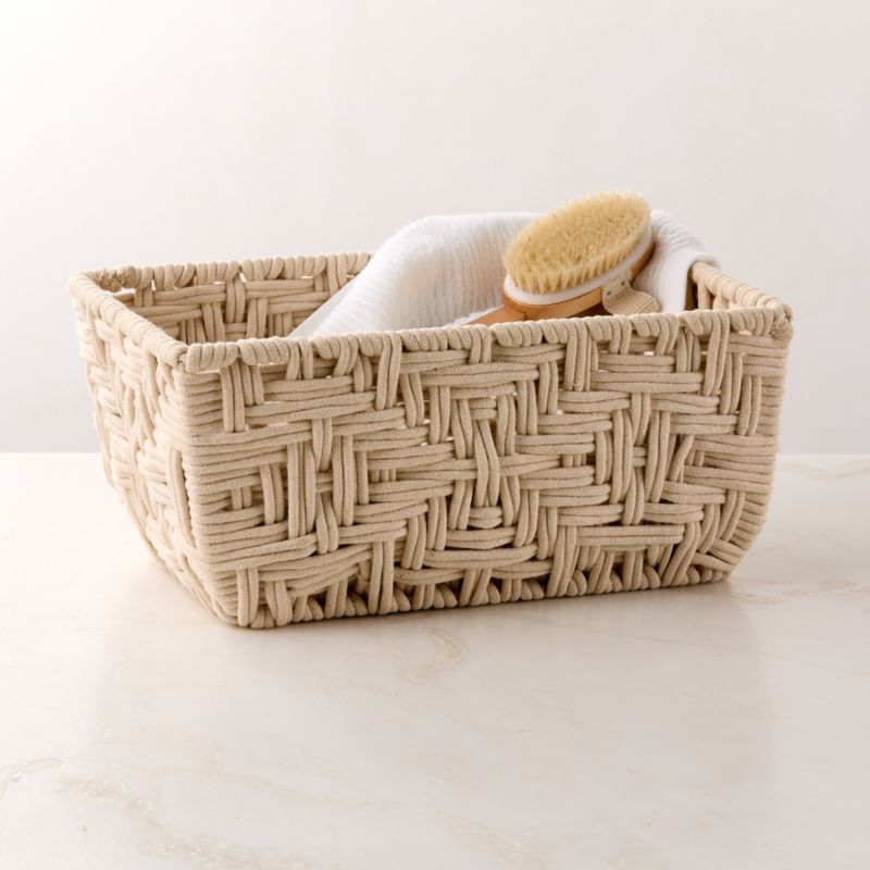 Rowen Handwoven Rectangle White Cotton Storage Basket Small