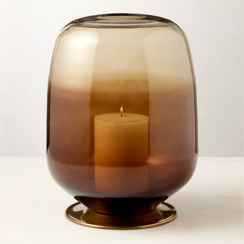 Roxana Ombre Amber Glass Hurricane Candle Holder