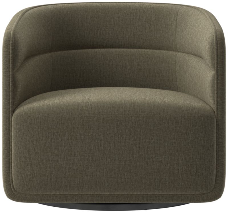 Smoothly upholstered swivel chair sports the hallmarks of a classic Mermelada Estudio design. Modern silhouette reveals design details such as horizontal tufted channels and a crisp welt around the frame for a tailored look. Soft upholstery is made to stay looking fresh while withstanding the realities of everyday living. CB2 exclusive.