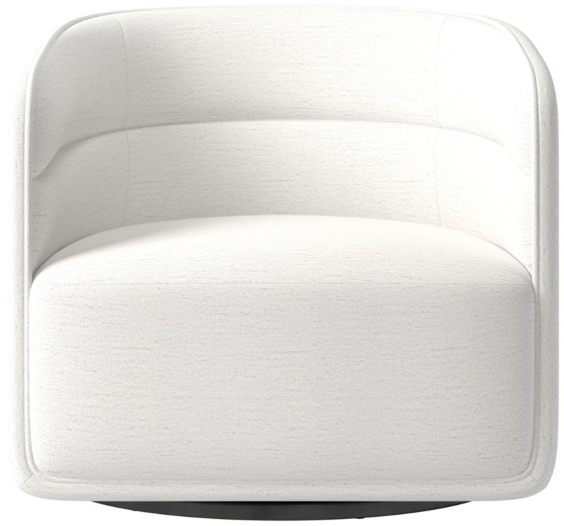 Smoothly upholstered swivel chair sports the hallmarks of a classic Mermelada Estudio design. Modern silhouette reveals design details such as horizontal tufted channels and a crisp welt around the frame for a tailored look. Soft upholstery is made to stay looking fresh while withstanding the realities of everyday living. CB2 exclusive.