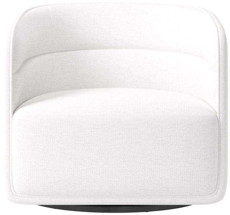 Smoothly upholstered swivel chair sports the hallmarks of a classic Mermelada Estudio design. Modern silhouette reveals design details such as horizontal tufted channels and a crisp welt around the frame for a tailored look. Soft upholstery is made to stay looking fresh while withstanding the realities of everyday living. CB2 exclusive.