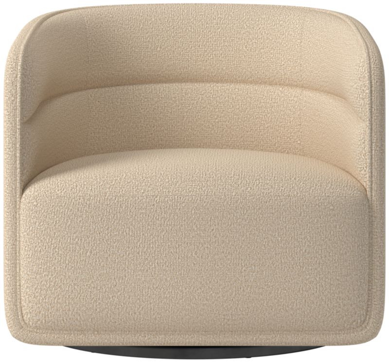 Smoothly upholstered swivel chair sports the hallmarks of a classic Mermelada Estudio design. Modern silhouette reveals design details such as horizontal tufted channels and a crisp welt around the frame for a tailored look. Soft upholstery is made to stay looking fresh while withstanding the realities of everyday living. CB2 exclusive.