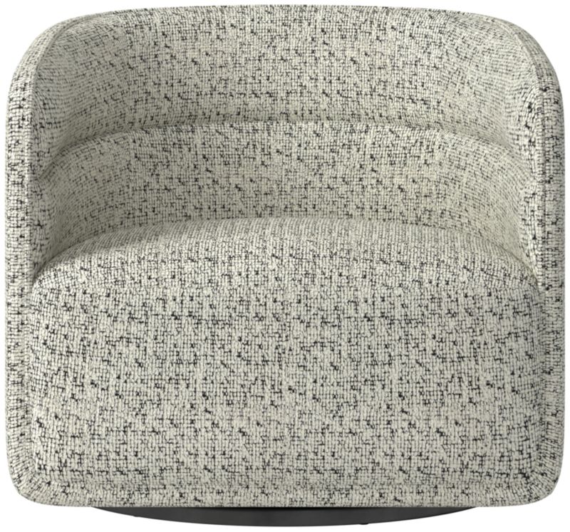 Smoothly upholstered swivel chair sports the hallmarks of a classic Mermelada Estudio design. Modern silhouette reveals design details such as horizontal tufted channels and a crisp welt around the frame for a tailored look. Soft upholstery is made to stay looking fresh while withstanding the realities of everyday living. CB2 exclusive.