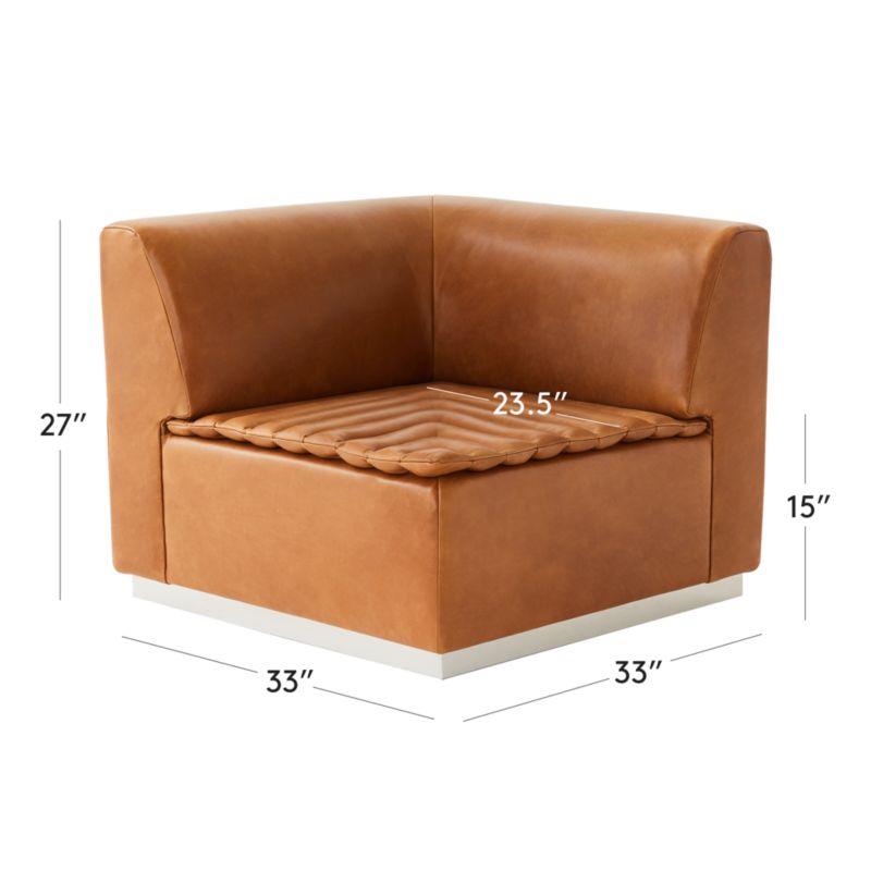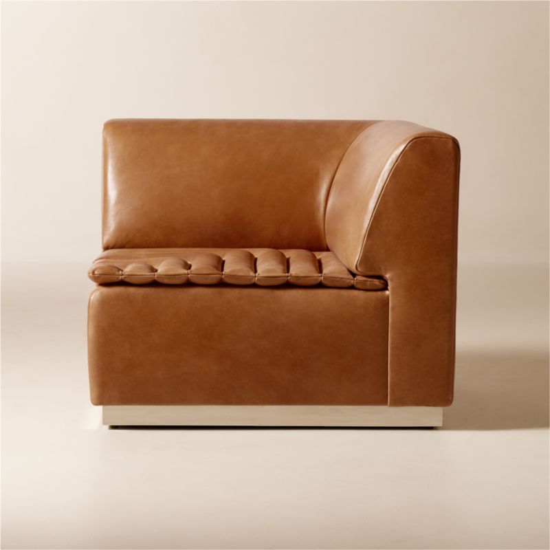 Nicholas Obeid makes the most out of its footprint. Set atop a polished stainless steel plinth base, the seat has a semi-detached channel-tufted cushion wrapped in tobacco-colored European leather. Combine with other Salon leather sectional pieces for a configuration that suits your space. CB2 exclusive.