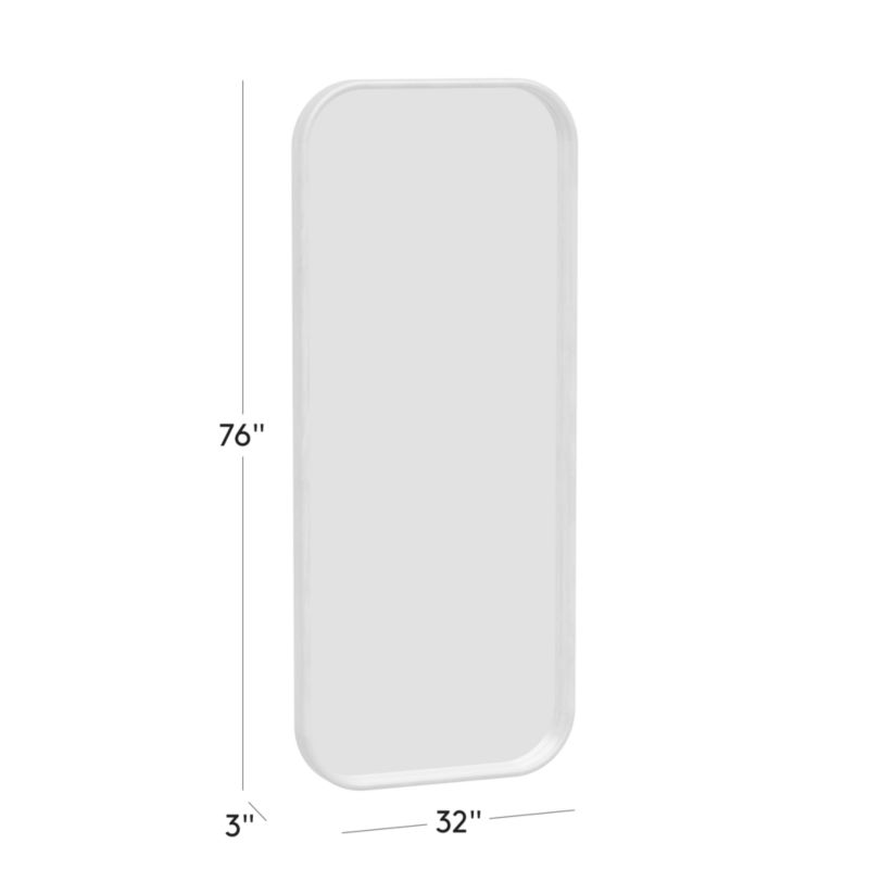 Refined floor mirror is crafted of beautifully grained acacia wood certified sustainable by the Forest Stewardship Council ® (FSC). The bullnose-edge frame features finger joint details, showcasing the piece's exceptional craftsmanship. Designed to lean against the wall, the oversized mirror lends an organic accent to the entryway, bedroom or closet. Pair with the Saone wall mirrors for a modern display. CB2 exclusive.