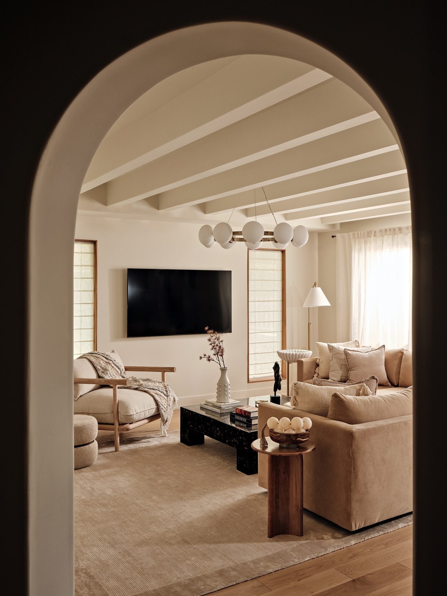 Barcelona-based Mermelada Estudio designed the Scatola coffee table with a vintage look that nods to classic bone furnishings. Bringing faraway mosaics to mind, the table features stunning swirls of warm white resin tiles complemented by bold, block-style legs. CB2 exclusive.
