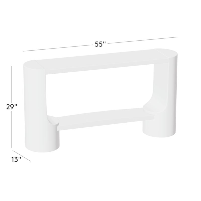 Sculptural console table by Jannis Ellenberger features solid honed Marquina black marble legs with carved curves. Nestled between the legs are two ash wood shelves with a matte black finish that matches that of the marble—a subtle detail that adds to the overall cohesiveness of the piece. CB2 exclusive.
