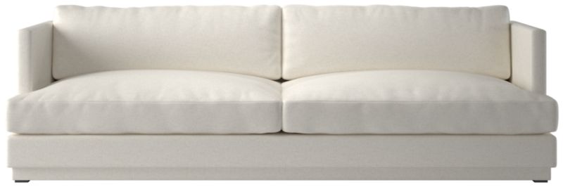 Assembled in North Carolina, crisp linen sofa by Melbourne-based design studio VUUE makes a casually modern statement. The deep, low-slung silhouette leaves plenty of room for lounging with supportive feather-down cushions that sit not too firm, but not too soft. Upholstered in an elegant linen-blend performance fabric. CB2 exclusive.