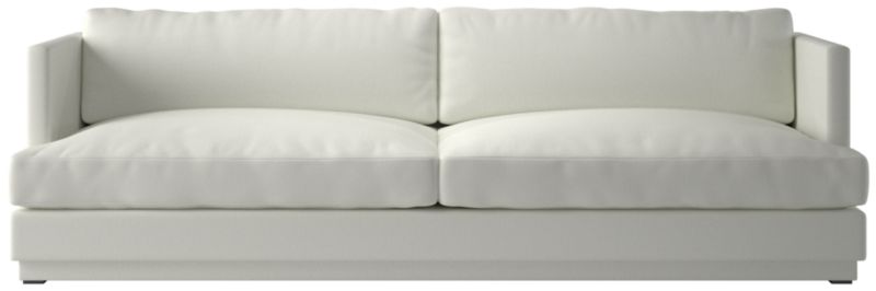 Assembled in North Carolina, crisp linen sofa by Melbourne-based design studio VUUE makes a casually modern statement. The deep, low-slung silhouette leaves plenty of room for lounging with supportive feather-down cushions that sit not too firm, but not too soft. Upholstered in an elegant linen-blend performance fabric. CB2 exclusive.