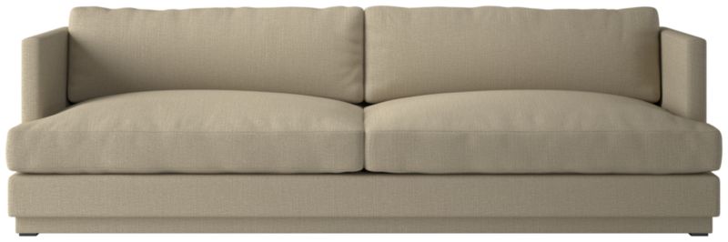 Assembled in North Carolina, crisp linen sofa by Melbourne-based design studio VUUE makes a casually modern statement. The deep, low-slung silhouette leaves plenty of room for lounging with supportive feather-down cushions that sit not too firm, but not too soft. Upholstered in an elegant linen-blend performance fabric. CB2 exclusive.