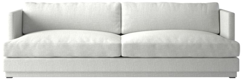 Assembled in North Carolina, crisp linen sofa by Melbourne-based design studio VUUE makes a casually modern statement. The deep, low-slung silhouette leaves plenty of room for lounging with supportive feather-down cushions that sit not too firm, but not too soft. Upholstered in an elegant linen-blend performance fabric. CB2 exclusive.