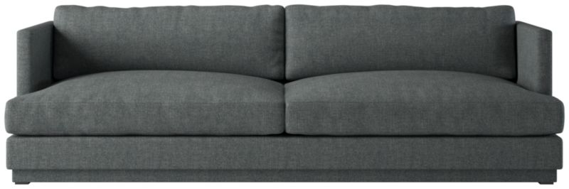 Assembled in North Carolina, crisp linen sofa by Melbourne-based design studio VUUE makes a casually modern statement. The deep, low-slung silhouette leaves plenty of room for lounging with supportive feather-down cushions that sit not too firm, but not too soft. Upholstered in an elegant linen-blend performance fabric. CB2 exclusive.