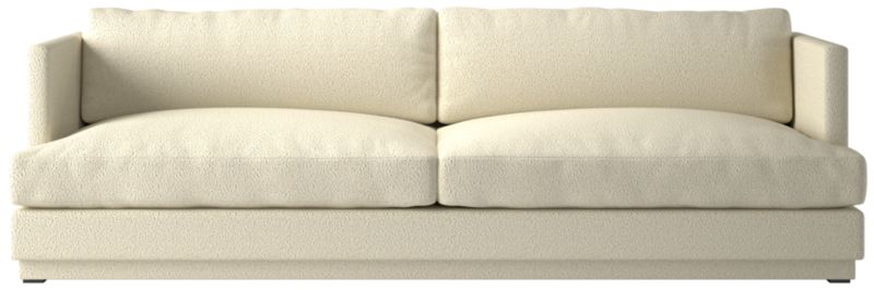 Assembled in North Carolina, crisp linen sofa by Melbourne-based design studio VUUE makes a casually modern statement. The deep, low-slung silhouette leaves plenty of room for lounging with supportive feather-down cushions that sit not too firm, but not too soft. Upholstered in an elegant linen-blend performance fabric. CB2 exclusive.