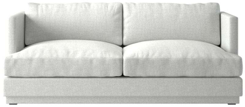 Assembled in North Carolina, crisp linen apartment sofa by Melbourne-based design studio VUUE makes a casually modern statement. The deep, low-slung silhouette leaves plenty of room for lounging with supportive feather-down cushions that sit not too firm, but not too soft. Upholstered in an elegant linen-blend performance fabric. CB2 exclusive.