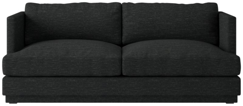 Assembled in North Carolina, crisp linen apartment sofa by Melbourne-based design studio VUUE makes a casually modern statement. The deep, low-slung silhouette leaves plenty of room for lounging with supportive feather-down cushions that sit not too firm, but not too soft. Upholstered in an elegant linen-blend performance fabric. CB2 exclusive.