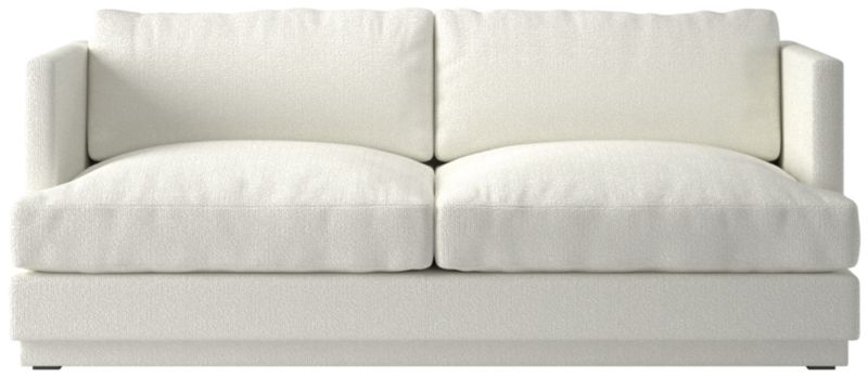 Assembled in North Carolina, crisp linen apartment sofa by Melbourne-based design studio VUUE makes a casually modern statement. The deep, low-slung silhouette leaves plenty of room for lounging with supportive feather-down cushions that sit not too firm, but not too soft. Upholstered in an elegant linen-blend performance fabric. CB2 exclusive.