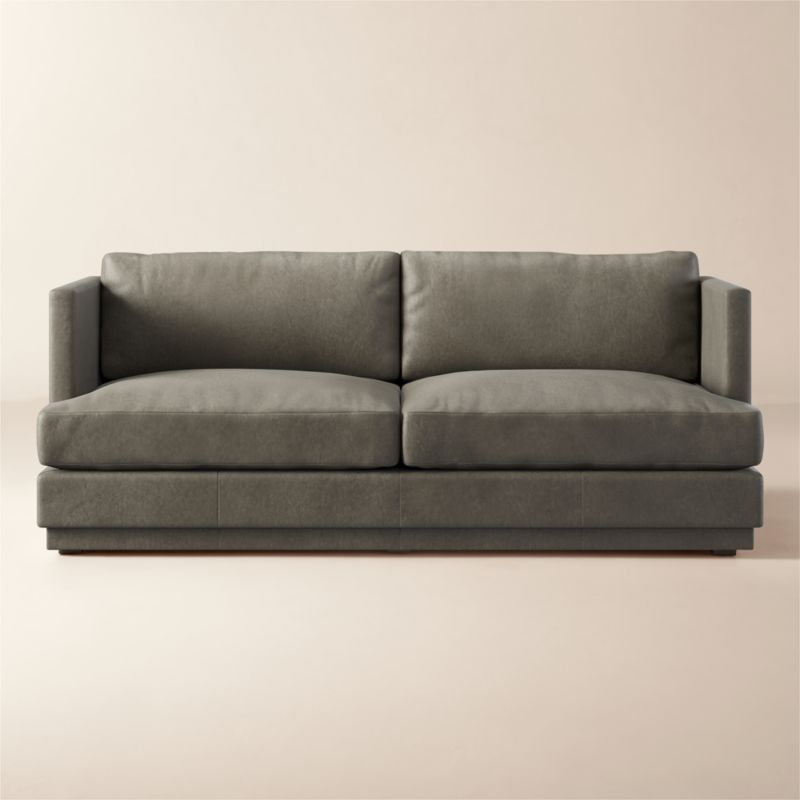 Assembled in North Carolina, leather sofa by Melbourne-based design studio VUUE makes a casually modern statement. The deep, low-slung silhouette leaves plenty of room for lounging with supportive feather-down cushions that sit not too firm, but not too soft. CB2 exclusive.