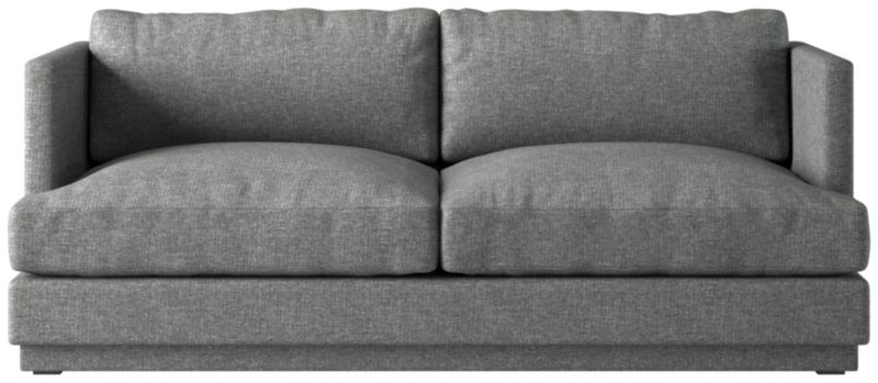 Assembled in North Carolina, crisp linen apartment sofa by Melbourne-based design studio VUUE makes a casually modern statement. The deep, low-slung silhouette leaves plenty of room for lounging with supportive feather-down cushions that sit not too firm, but not too soft. Upholstered in an elegant linen-blend performance fabric. CB2 exclusive.