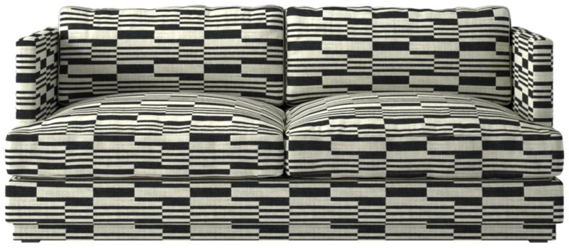 Assembled in North Carolina, crisp linen apartment sofa by Melbourne-based design studio VUUE makes a casually modern statement. The deep, low-slung silhouette leaves plenty of room for lounging with supportive feather-down cushions that sit not too firm, but not too soft. Upholstered in an elegant linen-blend performance fabric. CB2 exclusive.