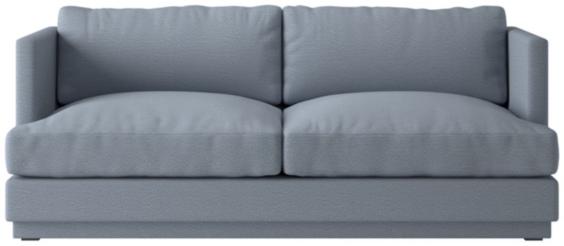 Assembled in North Carolina, crisp linen apartment sofa by Melbourne-based design studio VUUE makes a casually modern statement. The deep, low-slung silhouette leaves plenty of room for lounging with supportive feather-down cushions that sit not too firm, but not too soft. Upholstered in an elegant linen-blend performance fabric. CB2 exclusive.