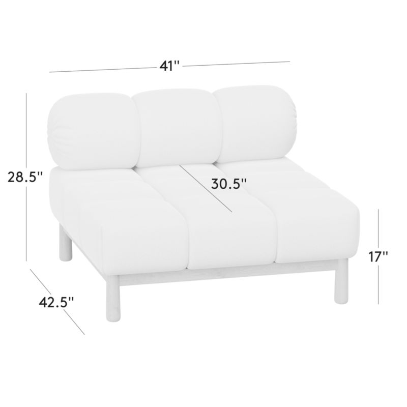 goop, the Sevigne leather chair invites low-slung lounging with deep cushioning and a supportive rolled back. Inspired by midcentury Italian modernism with a twist, our version is lifted entirely off the ground by American white oak legs certified sustainable by the Forest Stewardship Council ® (FSC) for a lighter, fresher silhouette. Supple leather upholstery in a custom bone color and channel tufting softens the grid of ultra-plush cushions. An unlacquered brass "g" medallion on the front leg for a refined final flourish. CB2 exclusive.