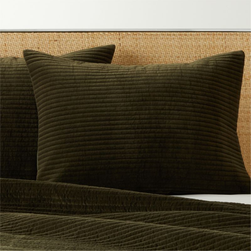 Rich forest green velvet shams bring an effortlessly glam look to the bedroom. Detailed stitching adds a soft, channeled texture to the front. Pair with matching quilt. CB2 exclusive.