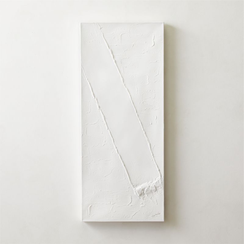 Exploring the art of ASMR, artist Amber Fey's "Skim I" is meant to evoke a feeling of tingly euphoria. "Akin to swiping your finger through icing on a cake or walking through fresh snow," she explains. Original work was created by slowly pulling a palette knife through putty. Reproduced here using the artist's original techniques. Hangs in two orientations.