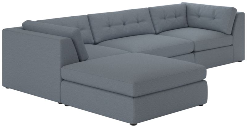 Sectional by VUUE is a modern take on a classic tufted sofa. Constructed for comfort, foam-core seat cushions are wrapped in a blend of feathers and down to create a supreme environment for lounging. Considered details such as solution-dyed performance boucle upholstery and blind tufting on back cushions lend the piece a finely tailored sensibility. CB2 exclusive.