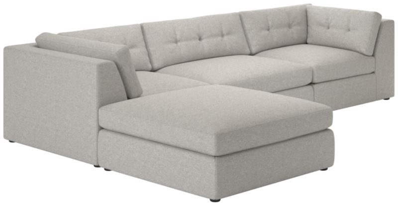 Sectional by VUUE is a modern take on a classic tufted sofa. Constructed for comfort, foam-core seat cushions are wrapped in a blend of feathers and down to create a supreme environment for lounging. Considered details such as solution-dyed performance boucle upholstery and blind tufting on back cushions lend the piece a finely tailored sensibility. CB2 exclusive.