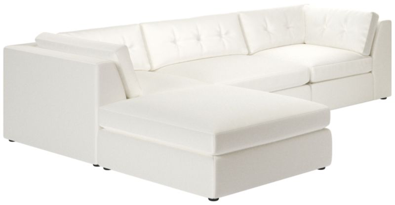 Sectional by VUUE is a modern take on a classic tufted sofa. Constructed for comfort, foam-core seat cushions are wrapped in a blend of feathers and down to create a supreme environment for lounging. Considered details such as solution-dyed performance boucle upholstery and blind tufting on back cushions lend the piece a finely tailored sensibility. CB2 exclusive.