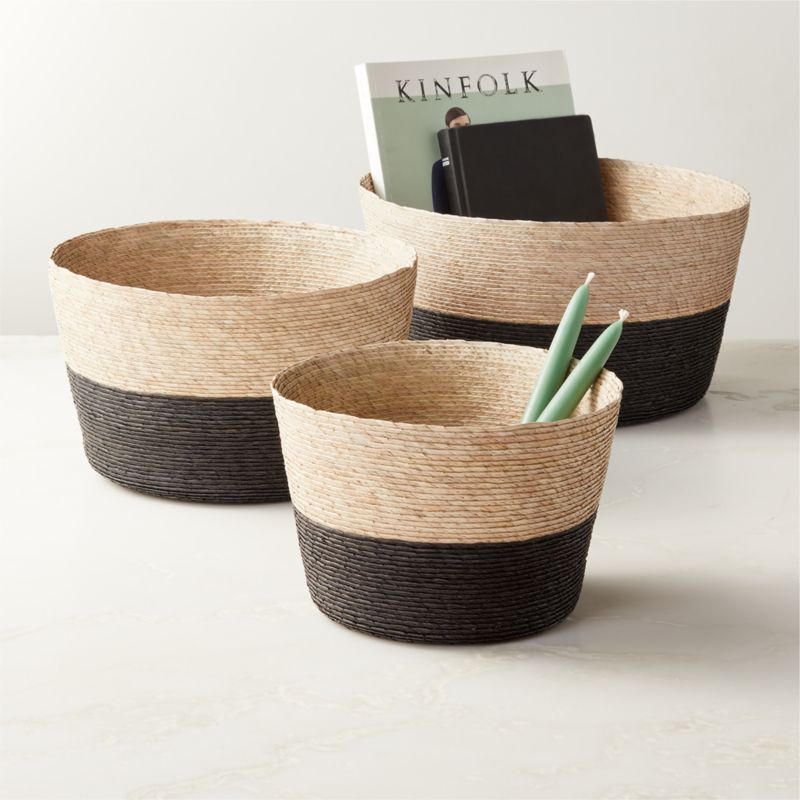 View CartSol Handwoven Black and Natural Storage Basket Set of 3