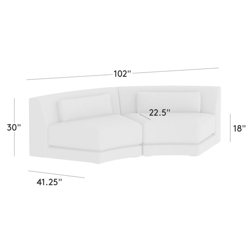 Sonora 2-Piece Curved Blue Performance Velvet Sectional Sofa29.5"Hheight102"Wwidth84"DdepthMeasurements are in inches.