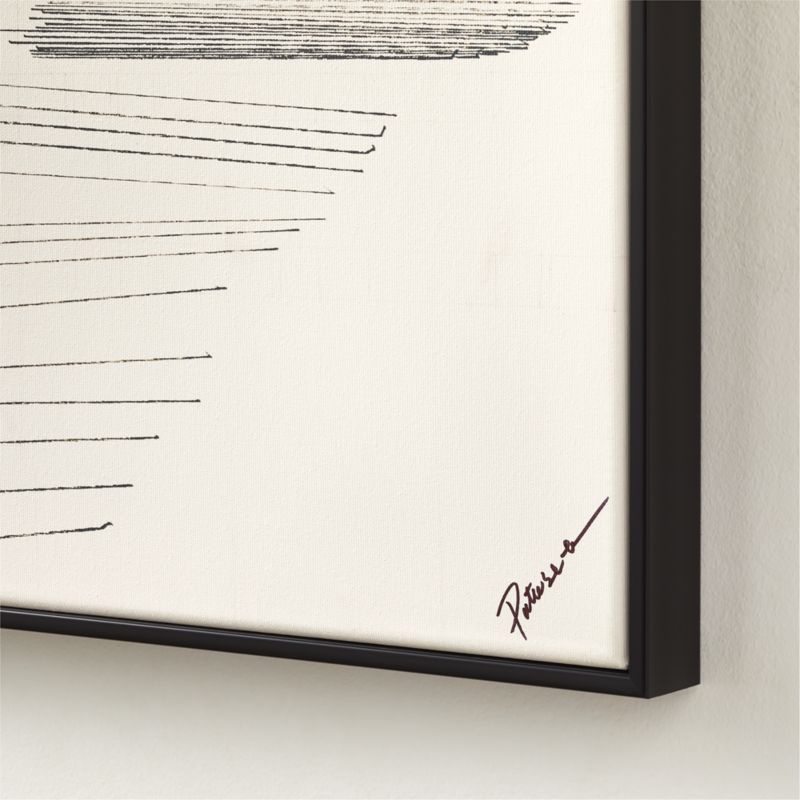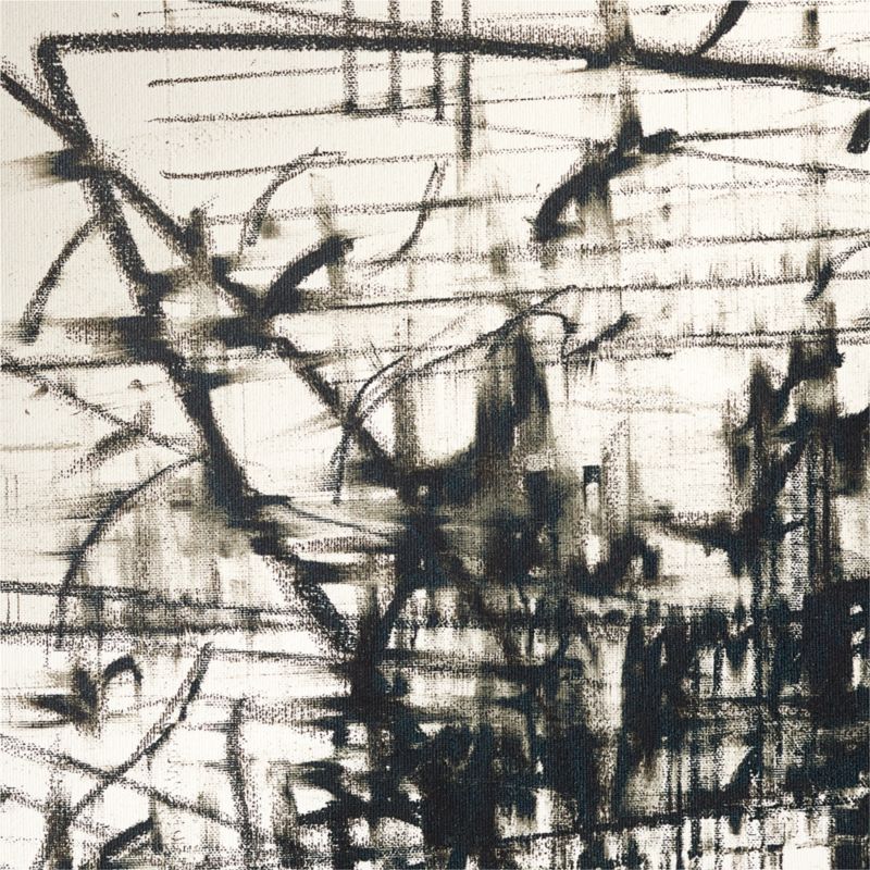 A statement piece in minimalist hues, "Sonora" was inspired by the visualization of sounds and frequencies. "I wanted the artwork to have the rippling effect of a surge of sound passing through an electrical storm," says artist Patrick St. Germain. A pale acrylic background is enlivened by compressed and natural charcoal details that mix in lively interplay.