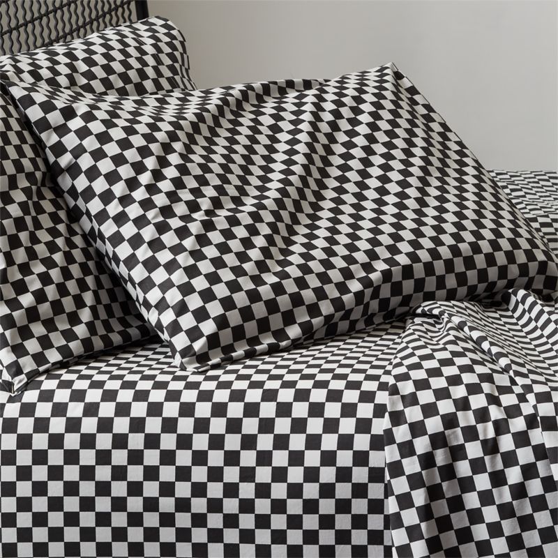 Squares of black and grey layer top to bottom, side to side in this sheet set by GQ. Pattern stacks on style to any bed, adding sharp texture and soft feels to your favorite spot. CB2 exclusive.