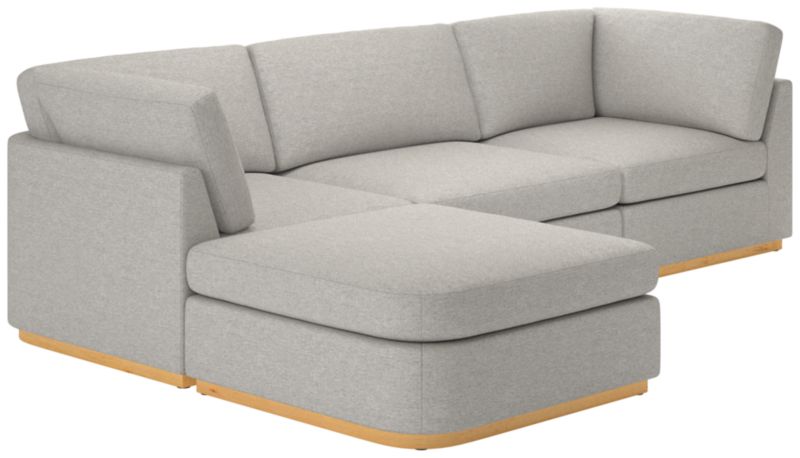 Sectional sofa's clean, minimalist-profile white oak plinth base and cloud-like comfort embodies Ross Cassidy's signature style of understated luxury. Plush cushions are generously filled with a fluffy mix of feathers, down and fibers to create a soft place to sink into. Performance boucle in ivory adds tonal texture. Built by hand in Mississippi using kiln-dried hardwood, sectional will bring style to the living space for years to come. CB2 exclusive.