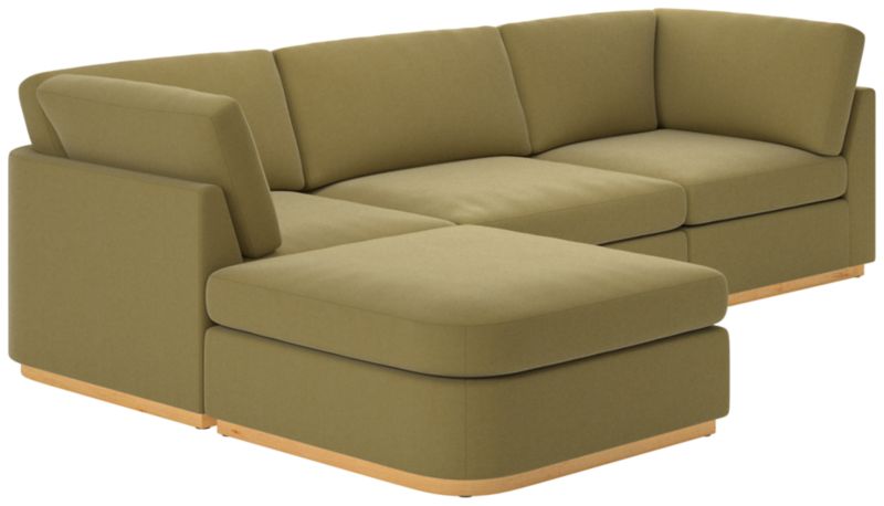 Sectional sofa's clean, minimalist-profile white oak plinth base and cloud-like comfort embodies Ross Cassidy's signature style of understated luxury. Plush cushions are generously filled with a fluffy mix of feathers, down and fibers to create a soft place to sink into. Performance boucle in ivory adds tonal texture. Built by hand in Mississippi using kiln-dried hardwood, sectional will bring style to the living space for years to come. CB2 exclusive.