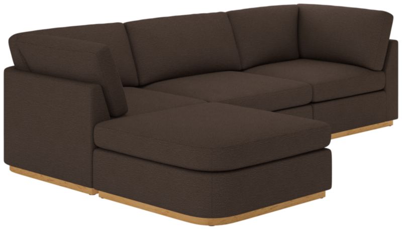 Sectional sofa's clean, minimalist-profile white oak plinth base and cloud-like comfort embodies Ross Cassidy's signature style of understated luxury. Plush cushions are generously filled with a fluffy mix of feathers, down and fibers to create a soft place to sink into. Performance boucle in ivory adds tonal texture. Built by hand in Mississippi using kiln-dried hardwood, sectional will bring style to the living space for years to come. CB2 exclusive.