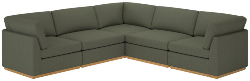 Sectional sofa's clean, minimalist-profilewhite oak plinth base and cloud-like comfort embodies