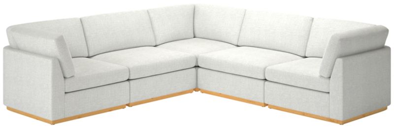 Sectional sofa's clean, minimalist-profilewhite oak plinth base and cloud-like comfort embodies Ross Cassidy's signature style of understated luxury. Plush cushions are generously filled with a fluffy mix of feathers, down and fibers to create a soft place to sink into. Performance boucle performance upholstery in ivory adds tonal texture. Built by hand in Mississippi using kiln-dried hardwood, sectional will bring style to the living space for years to come. CB2 exclusive.