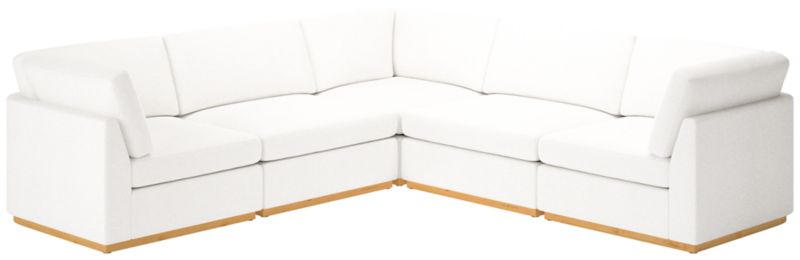 Sectional sofa's clean, minimalist-profilewhite oak plinth base and cloud-like comfort embodies